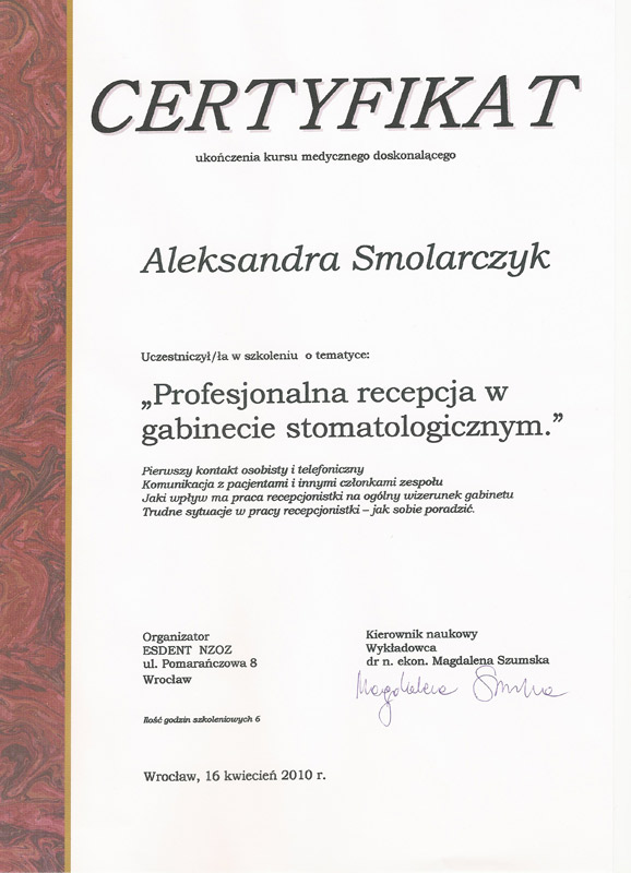Aleksandra Smolarczyk-Piwowar - higienistka stomatologiczna
