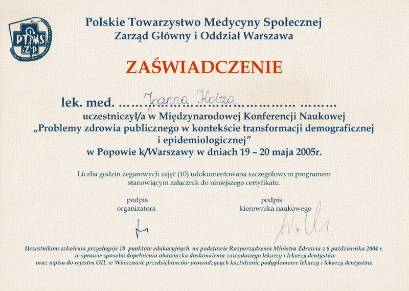 Dyplom i certyfikaty