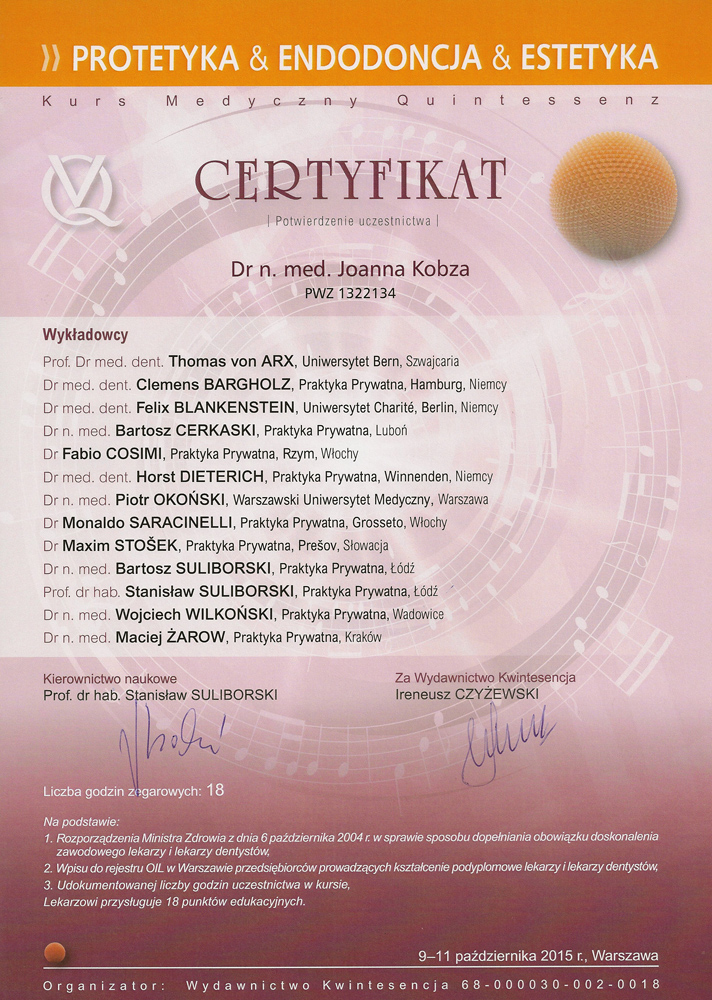 Organizator i wykładowca wielu kursów doskonalących w zakresie periodontologii. Pasjonuje się również stomatologią odtwórczą i endodoncją.