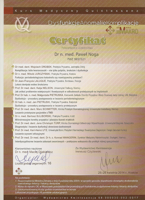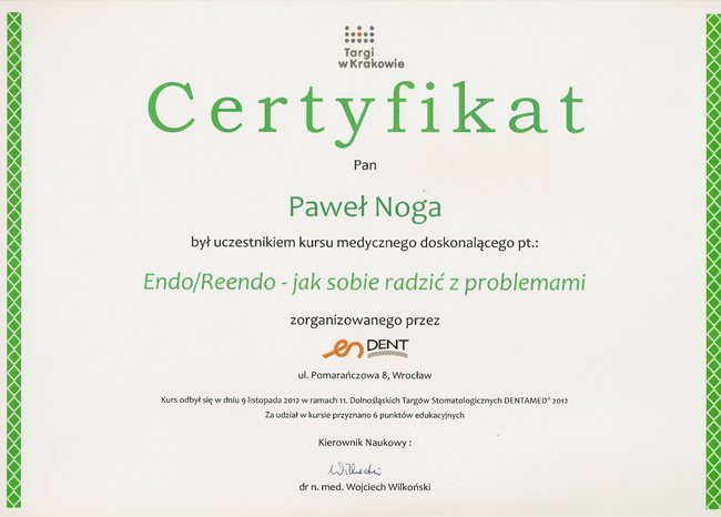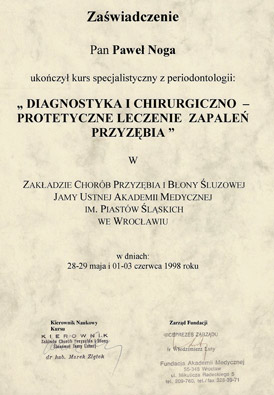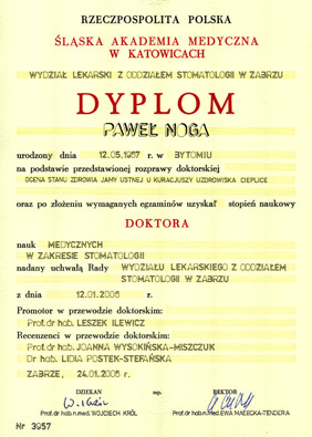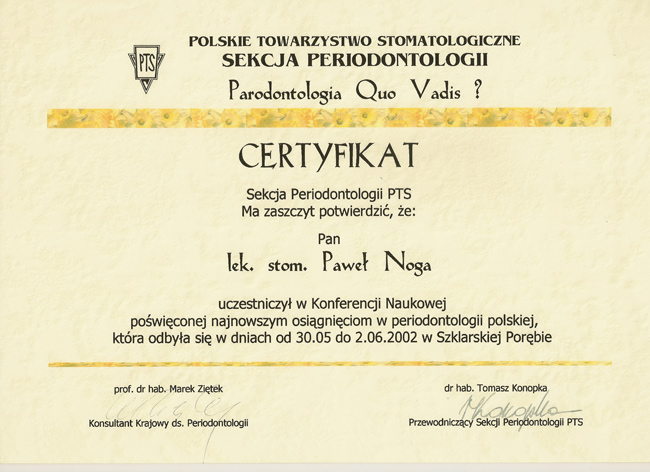 Dr n. med. Paweł Noga - specjalista chorób przyzębia i błony śluzowej jamy ustnej